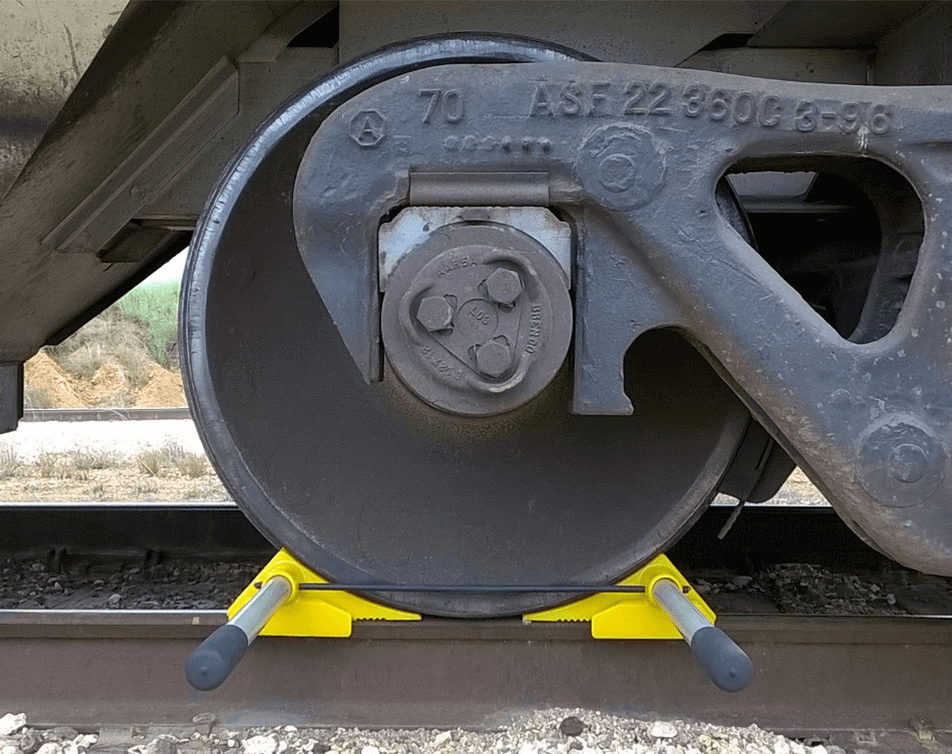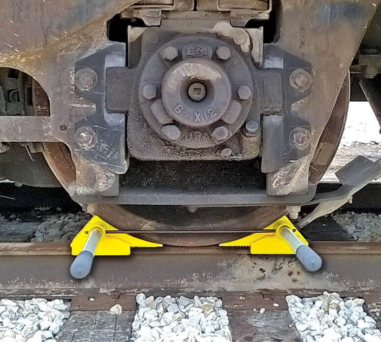 SPARK-PROOF Urethane Wheel Chocks are tough enough to block a tank car, but resilient enough that the car can be pulled over the chock by a locomotive without derailing. No more trying to yank free a steel chock that is stuck under a wheel. When it’s time to move, just pull the car over the chock and retrieve the chock later.