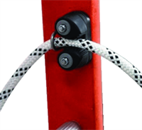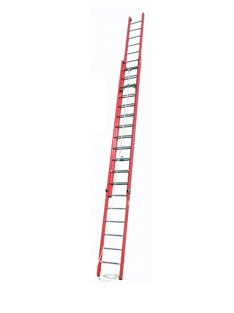 Rope-operated insulating extension ladder with 2 or 3 sections.