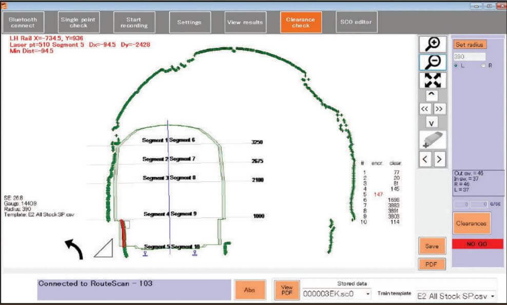 The RouteScan also has clearance software, so you can see if the train will fit through the measured tunnel/bridge (each customer gives us their individual train drawings and we can input in the software).