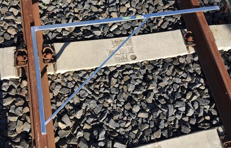 The Track Square is lightweight and manufactured in special steel. The gauge is insultaed from rail and has a bubble inte middle. It is used for first check of the alignment of the rails.