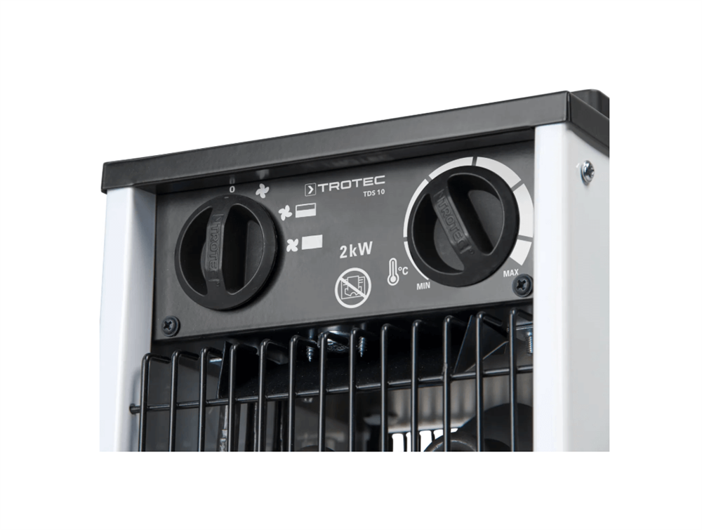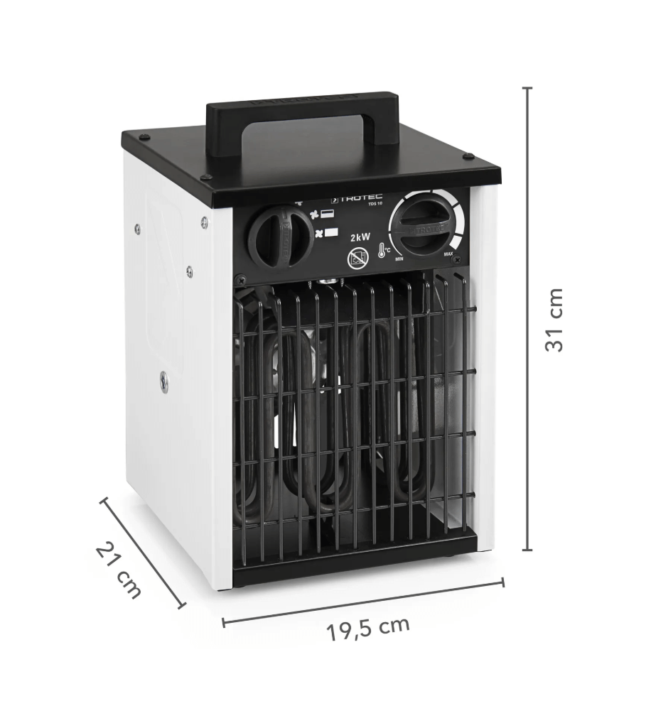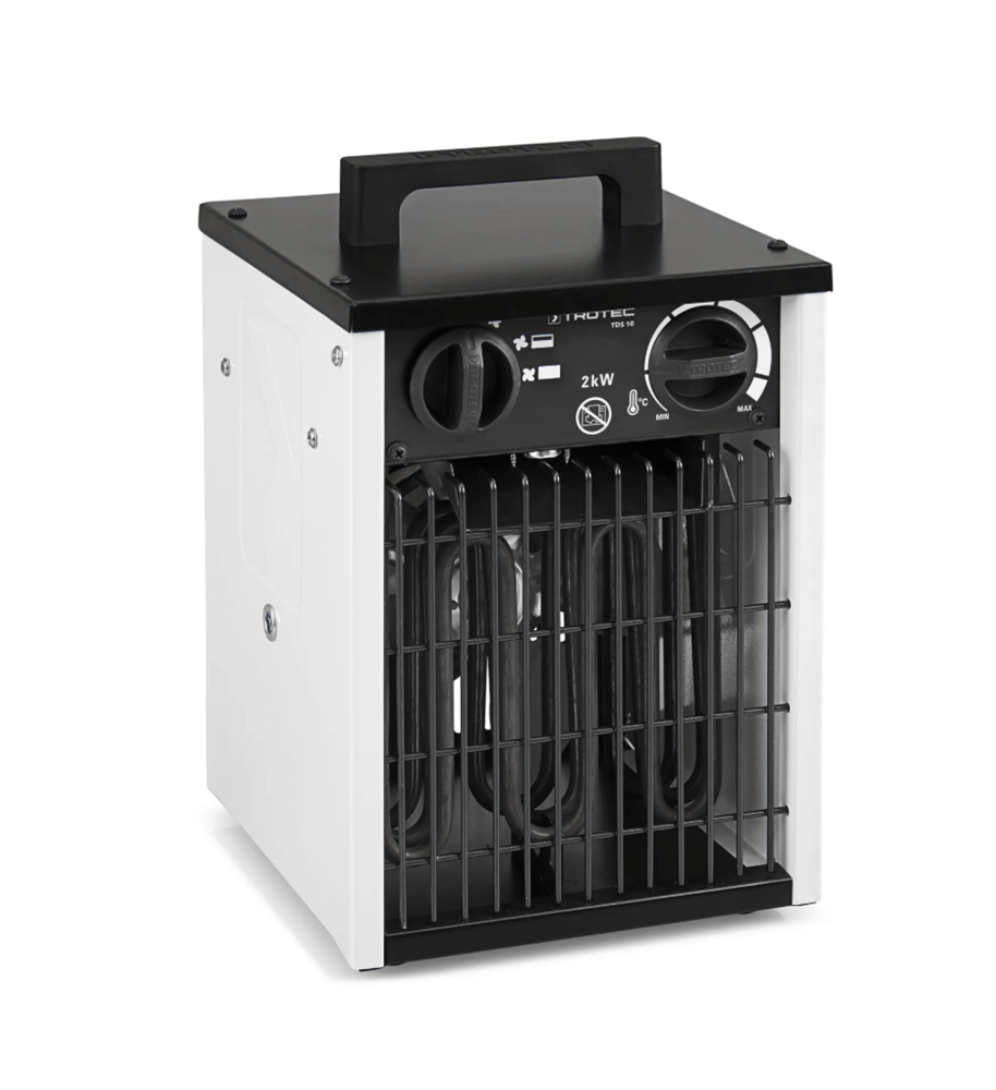 The TROTEC TDS 10 is a compact and efficient electric fan heater designed for reliable heating of small spaces such as site cabins, basements, storage rooms, and small work areas. Its robust metal construction and well-engineered design make it suitable for both professional and semi-professional applications.
