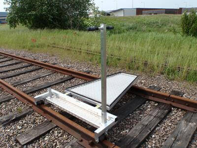 Total load 225 kg.For rail gauge 1520-1524mm.Weight only 30 kg.Raised for passing points and road crossing.Separated easily in three parts by hand.Loading area 0,8 m².