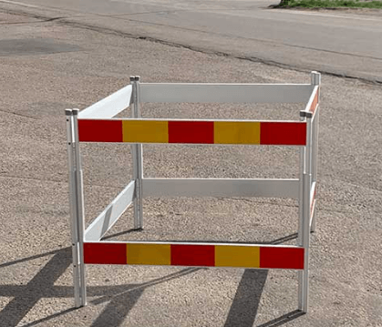 Sektionsgrind i aluminium för avstängning runt mindre arbeten och avstängningar så som brunnar, arbetsplatser, kabelskåp m.m.
