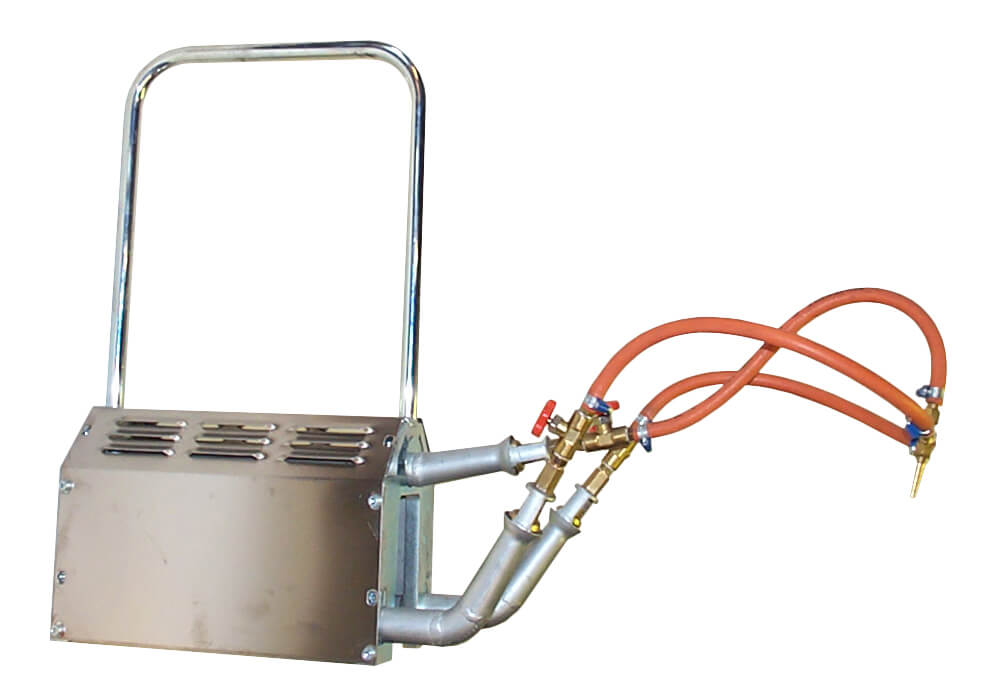 HEATY consists of three propane burners using the Bunsen principle. HEATY 600 can heat 24 inch / 600 mm at the same time.