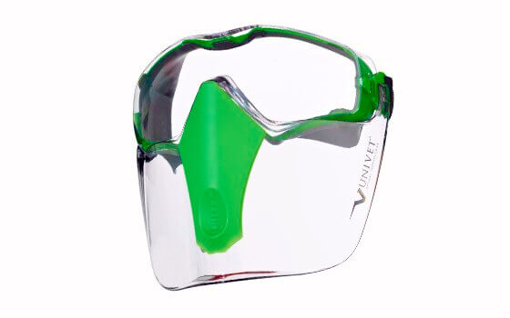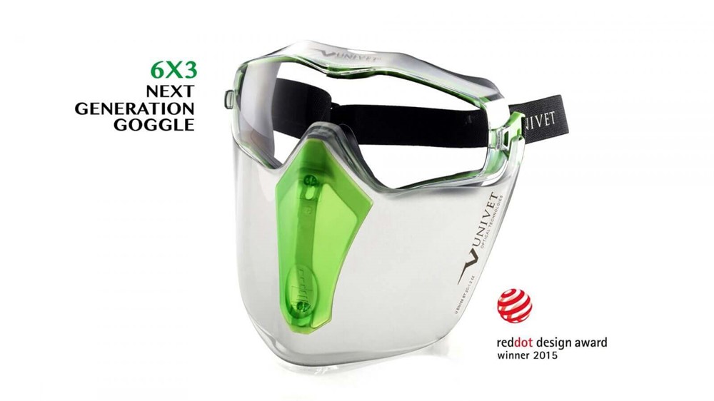 Univet Research and Development department designed 6X3 goggle with the intention of combining a higher level of protection and an innovative style. Equipped with a panoramic lens, it offers excellent peripheral vision and it can be used comfortably with any corrective eyewear. The originality of 6X3 takes form in the design of the face support that ensures a proper seating for respiratory masks and half masks and in the use of the facial protection, that provides additional defense to the operator’s face.