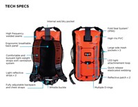 Perfekt för vattensporter, skidsport och alla andra typer av aktiviteter, den orangea 20 liter Pro-Vis ryggsäcken skyddar din utrustning från vatten, sand, smuts, snö och damm.