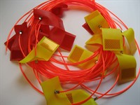 Traditionell avstängningslina med reflekterande flaggor i plast, monterade på lina.