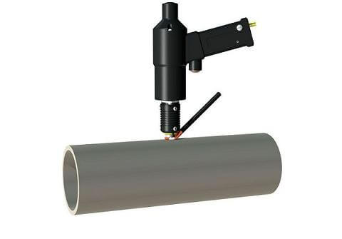4. Håll pistolen mot kabelsko och rörledningen. Vilken position du vill (upp, ner, i sidled, var som helst).
