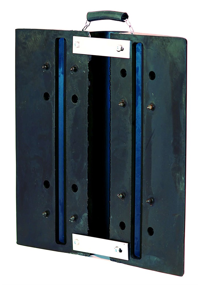 OBS! Användning av Värnamobryggan: Vid användning lägg Slangbrygga på rygg och lösgör plåten genom nyckelhålet. Aptera slag eller kabel i tunneln. Sätt där efter tillbaka plåtarna. Vänd Värnamobryggan med dubbarna nedåt för ihop dem till plats. Efter användning sätt tillbaka plåtarna på plats. Då värnamobryggan inte används förvaras den med fördel stående.