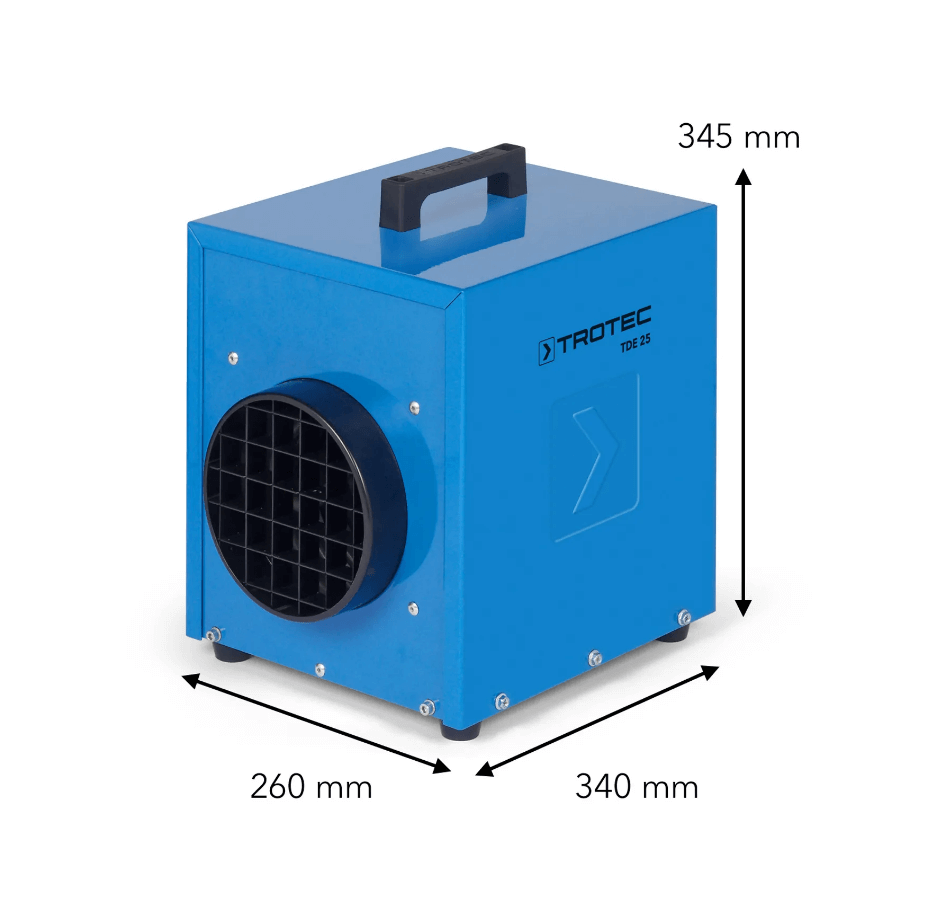 TROTEC TDE 25 V2 är en kompakt och effektiv elektrisk värmare, utvecklad för tillförlitlig uppvärmning av verkstäder, garage, byggarbetsplatser, lager och andra inomhusmiljöer. Den robusta metallkonstruktionen i kombination med hög värmeeffekt säkerställer snabb och jämn värmespridning där behov finns.
