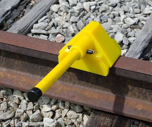 SPARK-PROOF polyuretan stoppklossar är tuffa nog för att blockera en tankvagn, men tillräckligt fjädrande för att vagnen kan dras över klossen av ett lokomotiv utan att spåra ur. Inget behov längre att försöka frigöra stålbromsskor som sitter fast under ett vagnshjul. När det är dags att flytta, dra bara vagnen över klossen och hämta klossen senare.