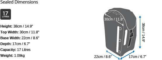 Balansera din cykling och skydda din utrustning med denna 17-liters vattentäta cykelväska som kan kombineras parvis för en generös 34 liters lagringskapacitet.