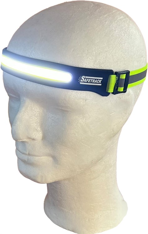 En smart & ljusstark pannlampa med USB-C-laddning, utrustad med en 120 lumen/3 watt chip-LED-ljus och en 350 lumen/5 watt COB-ljusremsa.